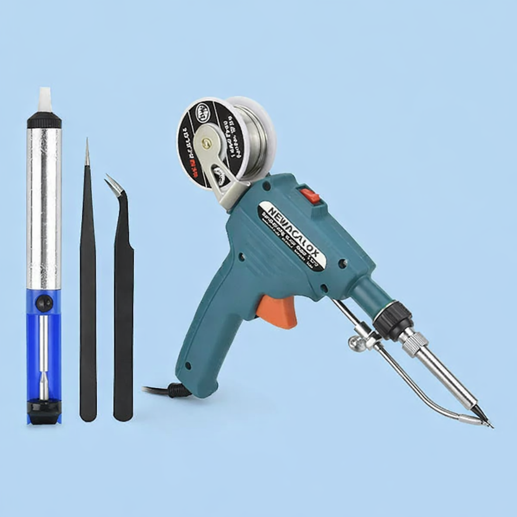 🔥 Pistola con alimentación automática + estaño + removedor de soldadura + pinzas de precisión